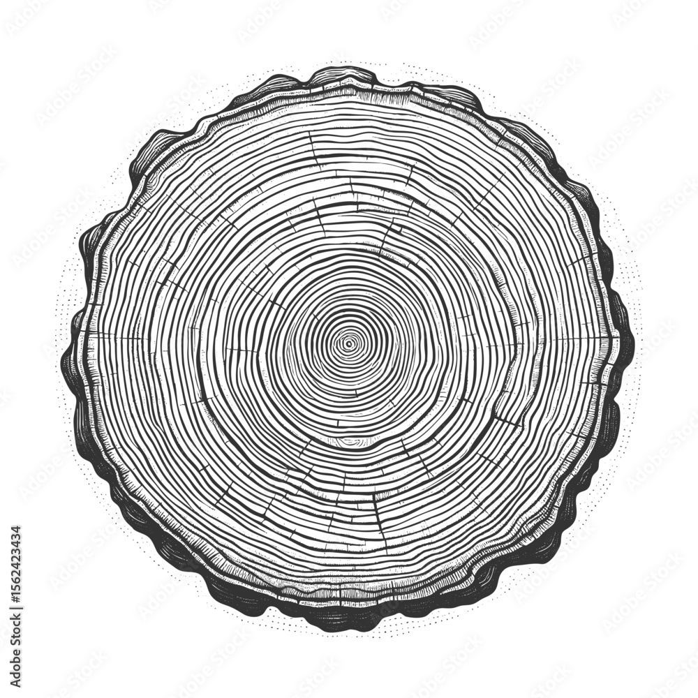 Wall mural tree trunk cross section showing growth rings sketch engraving generative ai fictional character vec