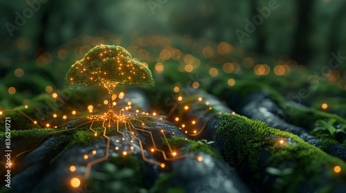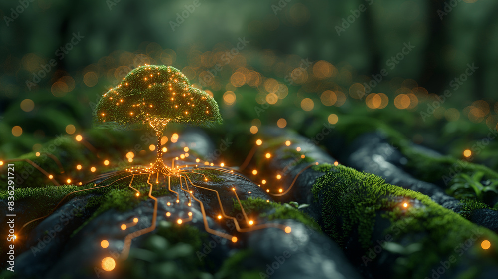 Wall mural trees grow with innovative microcircuit boards green computer green technology. 3d illustration of a - Wall murals Wall mural trees grow with innovative microcircuit boards green computer green technology. 3d illustration of a - Wall murals