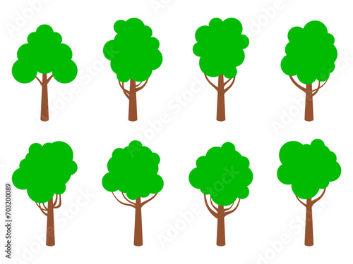 Wall mural : Trees icon set isolated on white background - collection of trees with green foliage in flat style - d