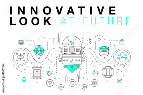 Wall mural trendy innovation systems layouts in polygonal contour line composition, future analysis and technol