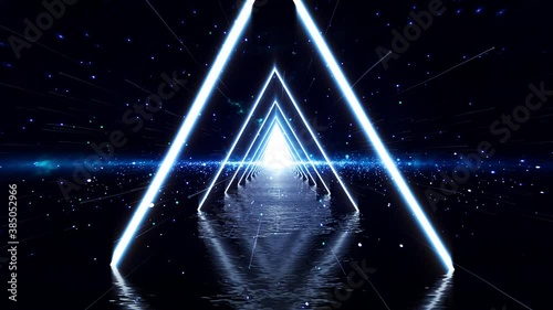 Wall mural triangle neon loop. this clip is a neon go through nebula and camera fly to light in a seamless loop