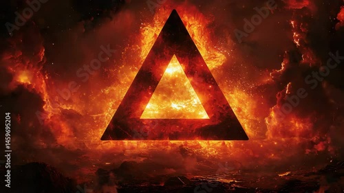Wall mural triangle shaped object surrounded by intense flames creating a striking visual contrast of fire - Wall murals Wall mural triangle shaped object surrounded by intense flames creating a striking visual contrast of fire - Wall murals