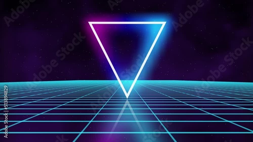 Wall mural triangle synthwave retro futuristic seamless animation game grid. neon digital triangle synthwave wi