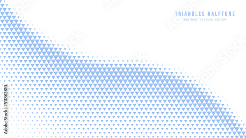 The watermark will not be included on Wall mural.: Triangles halftone pattern modern geometry abstract vector smooth curved blue border isolated on whi