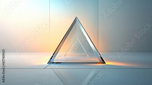 Triangular glass prism on tiled surface with gradient backgroundWall mural
