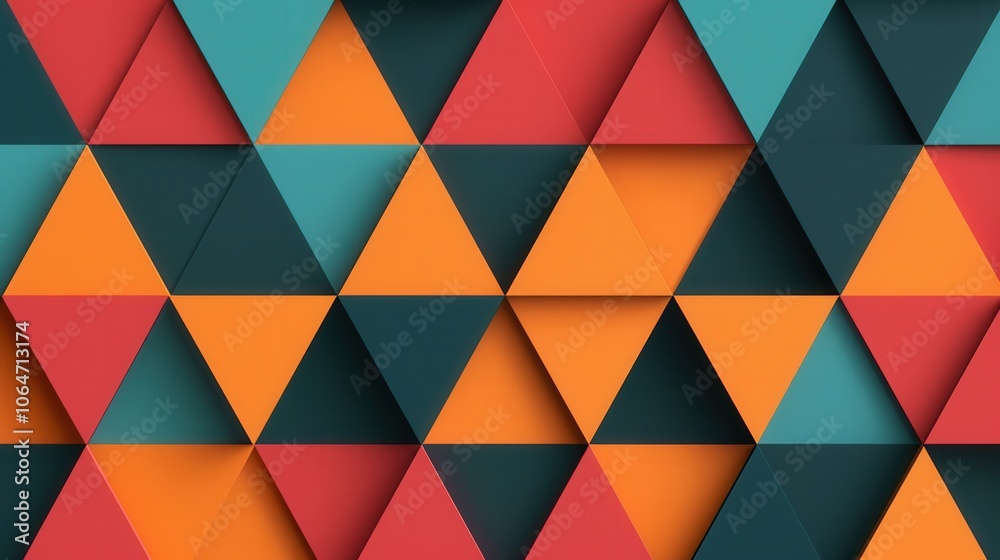 The watermark will not be included on Wall mural.: Triangular harmony, an abstract composition of floating 3d triangles creates a dynamic geometric lan