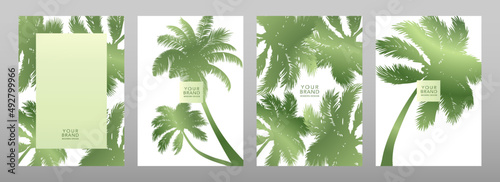 The watermark will not be included on Wall mural.: Tropical cover, frame design set with abstract leaves, palm tree pattern - exotic exotic vector backg