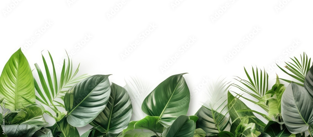Wall mural : Tropical leaves on a white background creating a serene copy space image