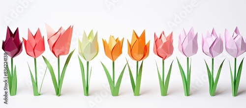 The watermark will not be included on Wall mural.: Tulip origami displayed on a white background with copy space image -