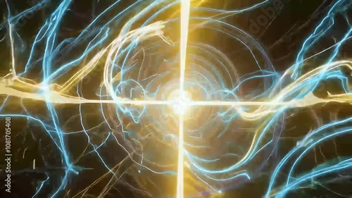 Wall mural tunnel glowing particles electric lines representing advanced technology motion high quality 4k visu - Wall murals Wall mural tunnel glowing particles electric lines representing advanced technology motion high quality 4k visu - Wall murals