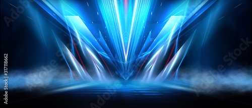 Wall mural tunnel in blue neon light, underground passage. abstract blue background. background of an empty bla