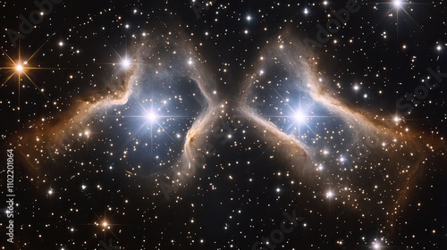Wall mural : Twin stars in a binary system orbiting each other in a cosmic dance amidst the starry background -