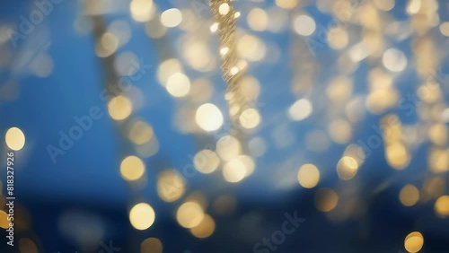 Wall mural twinkling golden lights bokeh animation seamless loop video background for festive projects. golden