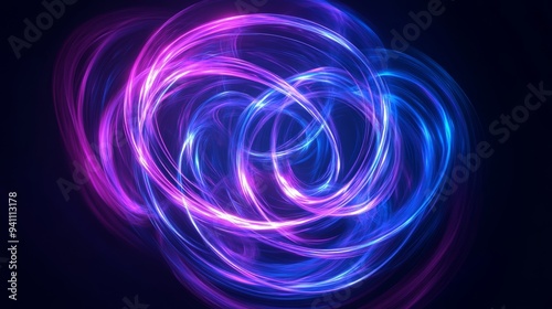 The watermark will not be included on Wall mural.: Twisting neon rings in vibrant shades of blue and purple against a dark space
