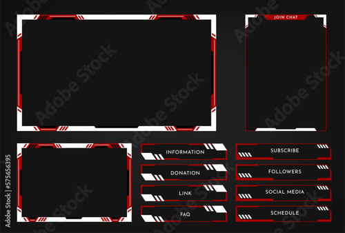 Wall mural : Twitch stream overlay panel template - digital streaming screen interface - live video stream - vector