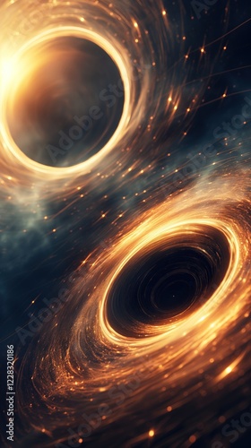 Wall mural two black holes are rotating and generating energy in the darkness of outer space, surrounded by swi - Wall murals Wall mural two black holes are rotating and generating energy in the darkness of outer space, surrounded by swi - Wall murals