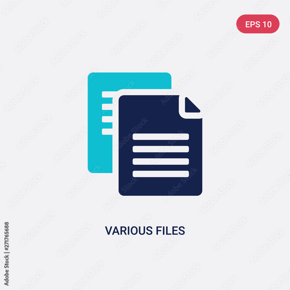 Two color various files vector icon from education concept - isolated blue various files vector sign Wall mural