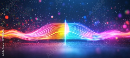 The watermark will not be included on Wall mural.: Two colorful neon waves merging in a futuristic shimmering background