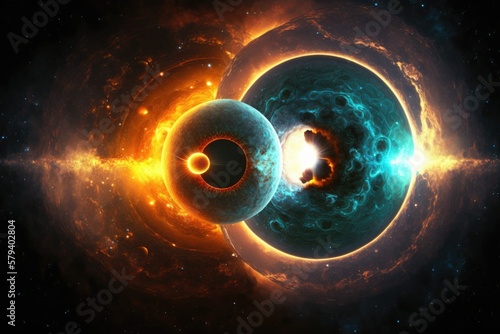 Wall mural two dimensional image. huge voids of space. stellar objects (the sun, the planets, the moons) that s