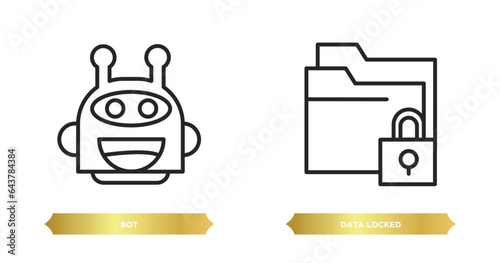 The watermark will not be included on Wall mural.: Two editable outline icons from internet security concept - thin line icons such as bot, data locked