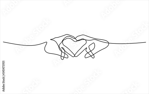 Wall mural two hands and heart shape sign in continuous line drawing minimalism