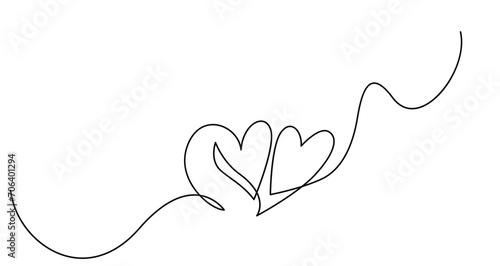 The watermark will not be included on Wall mural.: Two hearts in simple one line style - love background in continuous