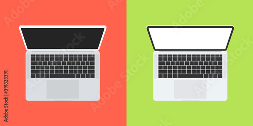 The watermark will not be included on Wall mural.: Two laptop with flat design style on color background - top view - computer mockup - vector illustratio