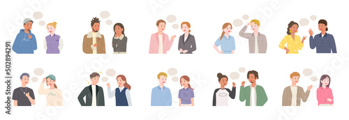 The watermark will not be included on Wall mural.: Two people are talking - two person set collection - flat design style vector illustration -