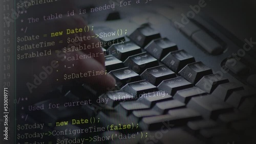 Wall mural typing php-code on screen by web developer and php developer shows computer screen with source code  - Wall murals Wall mural typing php-code on screen by web developer and php developer shows computer screen with source code - Wall murals