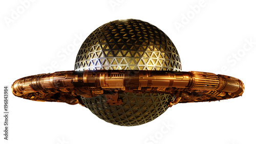 Wall mural ufo, alien spaceship isolated on white background, flying saucer with steampunk design (3d rendering