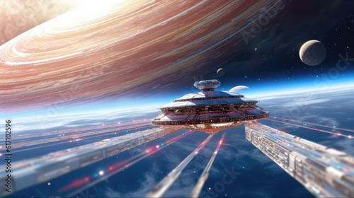 The watermark will not be included on Wall mural.: Ufo in space created with generative ai technology