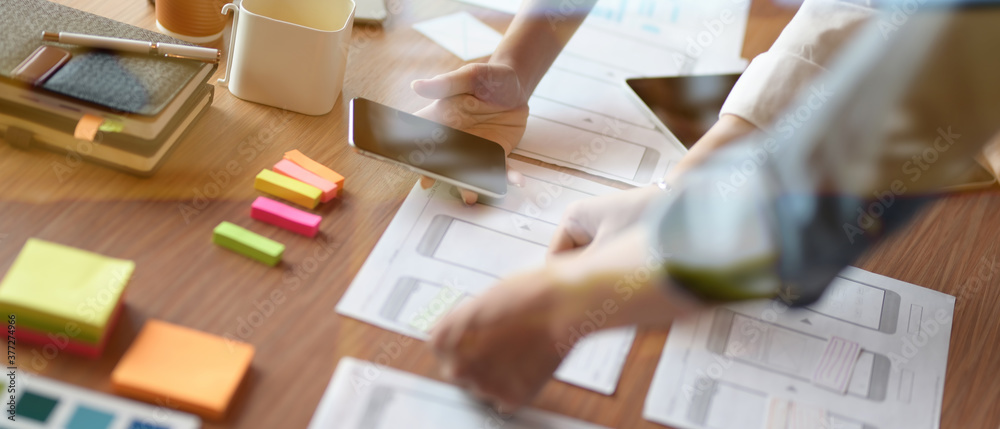 Wall mural ui designer team working on smartphone application - Wall murals Wall mural ui designer team working on smartphone application - Wall murals