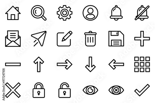 The watermark will not be included on Wall mural.: Ui icon set with detailed line style symbol collection for web