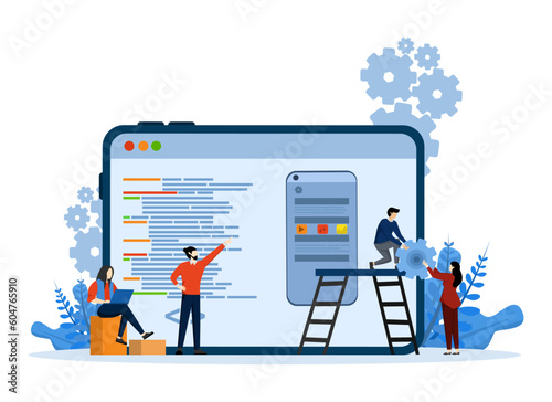 Wall mural : Ui ux design concept, with developer team create custom design for mobile app, suitable for landing