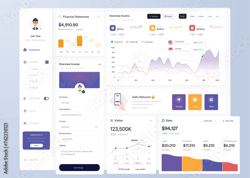 The watermark will not be included on Wall mural.: Ui ux infographic dashboard - ui design with graphs, charts and diagrams - web interface template