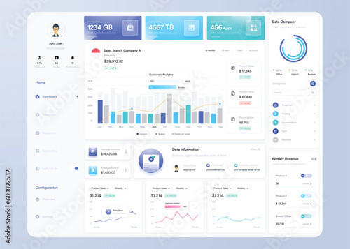 Wall mural : Ui ux infographic dashboard - ui design with graphs, charts and diagrams - web interface template