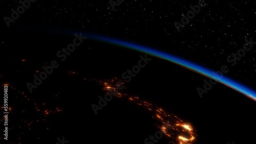 Wall mural ultra realistic sunrise over the earth. view of planet earth from space. 4k. 3840x2160. 3d animation - Wall murals Wall mural ultra realistic sunrise over the earth. view of planet earth from space. 4k. 3840x2160. 3d animation - Wall murals