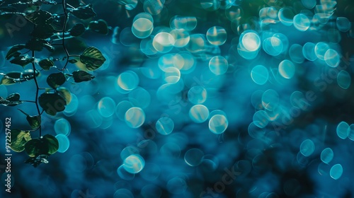 Underwater bokeh effect with soft blue gradient background, creating a tranquil and dreamy aquatic aWall mural
