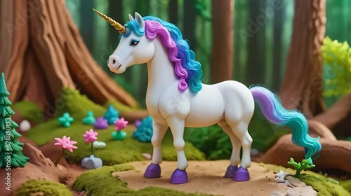 The watermark will not be included on Wall mural.: Unicorn stands in a fairy forest - created with generative ai tools