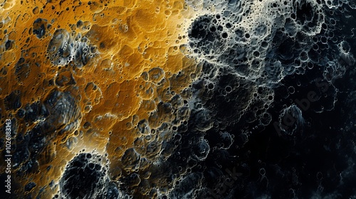 The watermark will not be included on Wall mural.: Unique abstract texture featuring dark and golden hues resembling fluid patterns on a surface