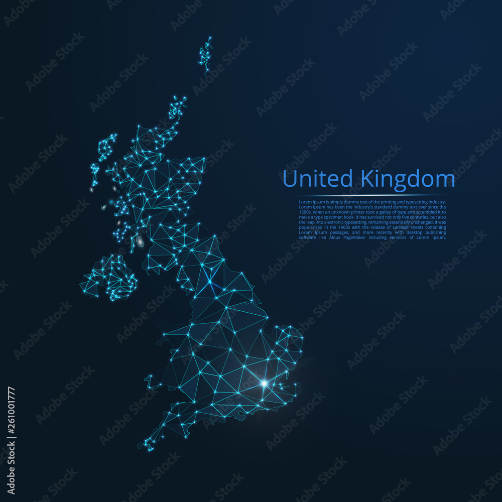 Wall mural united kingdom communication network map. vector low poly image of a global map with lights in the f - Wall murals Wall mural united kingdom communication network map. vector low poly image of a global map with lights in the f - Wall murals