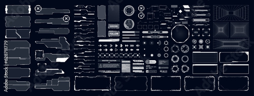 Universal cyberpunk futuristic user interface - sci-fi elements, hud frame, callouts, loading bar, bWall mural