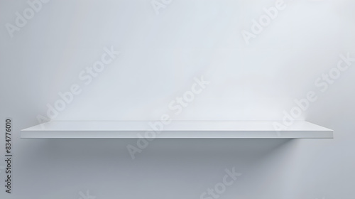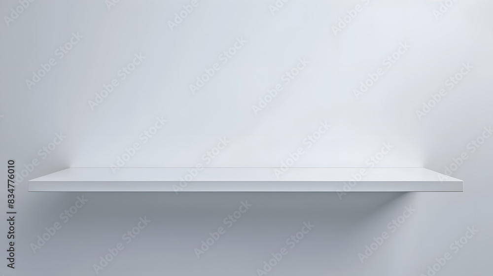 The watermark will not be included on Wall mural.: Universal minimalistic background for product presentation - white empty shelf on a light gray wall -