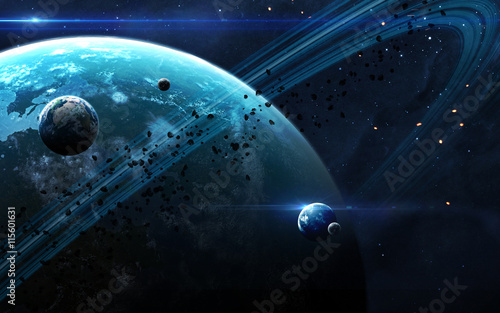 Wall mural universe scene with planets, stars and galaxies in outer space showing the beauty of exploration. el - Wall murals Wall mural universe scene with planets, stars and galaxies in outer space showing the beauty of exploration. el - Wall murals