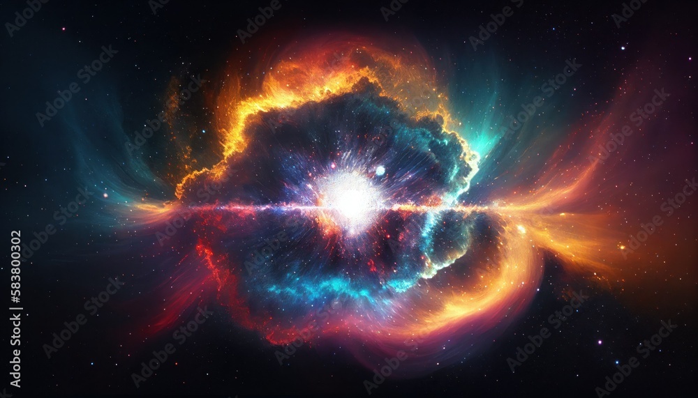 The watermark will not be included on Wall mural.: Universe space and galaxy bigbang supernova explode from the center release dust cloud and colorful