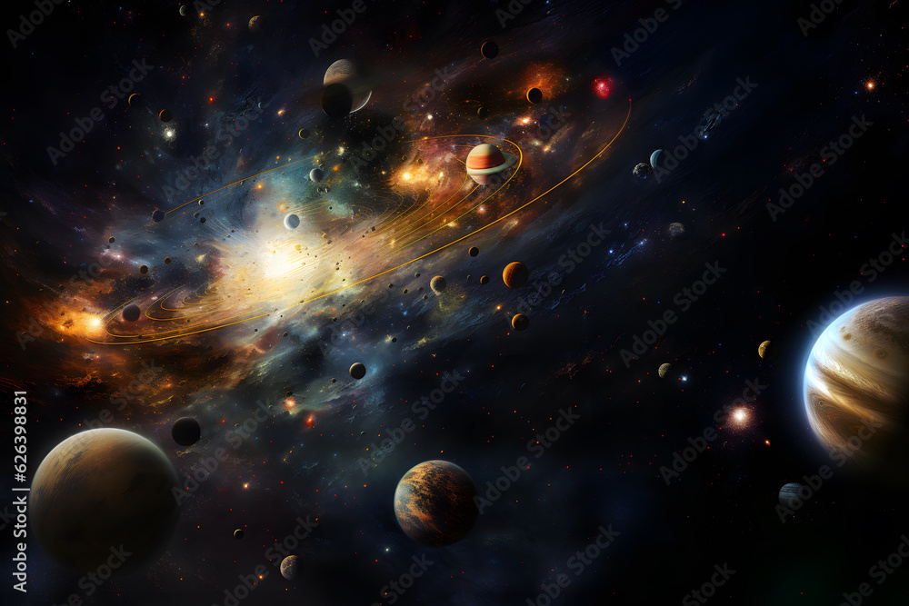The watermark will not be included on Wall mural.: Universe with all the planets