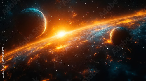 Wall mural unknown planet from outer space. space nebula. cosmic cluster of stars. outer space background - Wall murals Wall mural unknown planet from outer space. space nebula. cosmic cluster of stars. outer space background - Wall murals
