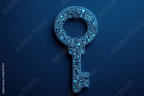 The watermark will not be included on Wall mural.: Unlocking personalized success - paper cut giant key with customer preference icons for business str