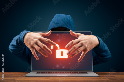 The watermark will not be included on Wall mural.: Unprotected computer usurped by hacker cyber security threat concept