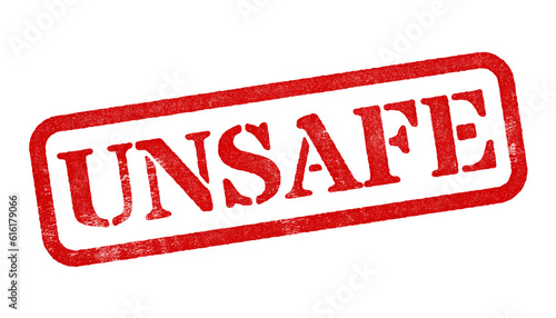 Wall mural : Unsafe red rubber stamp isolated on transparent background with distressed texture effect